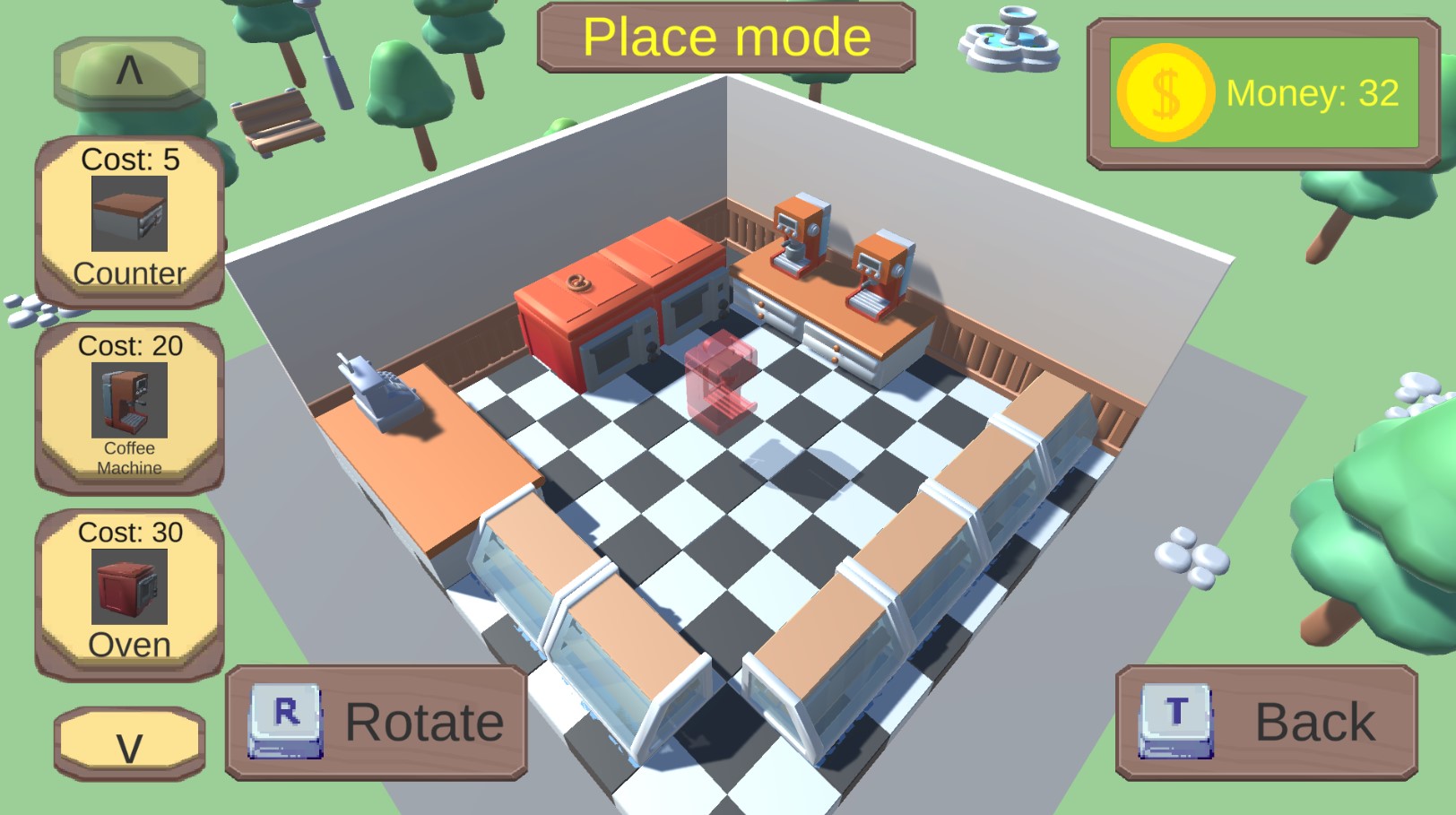 This is a Prototyp for a Cafe simulator. You can buy equipment to sell products.